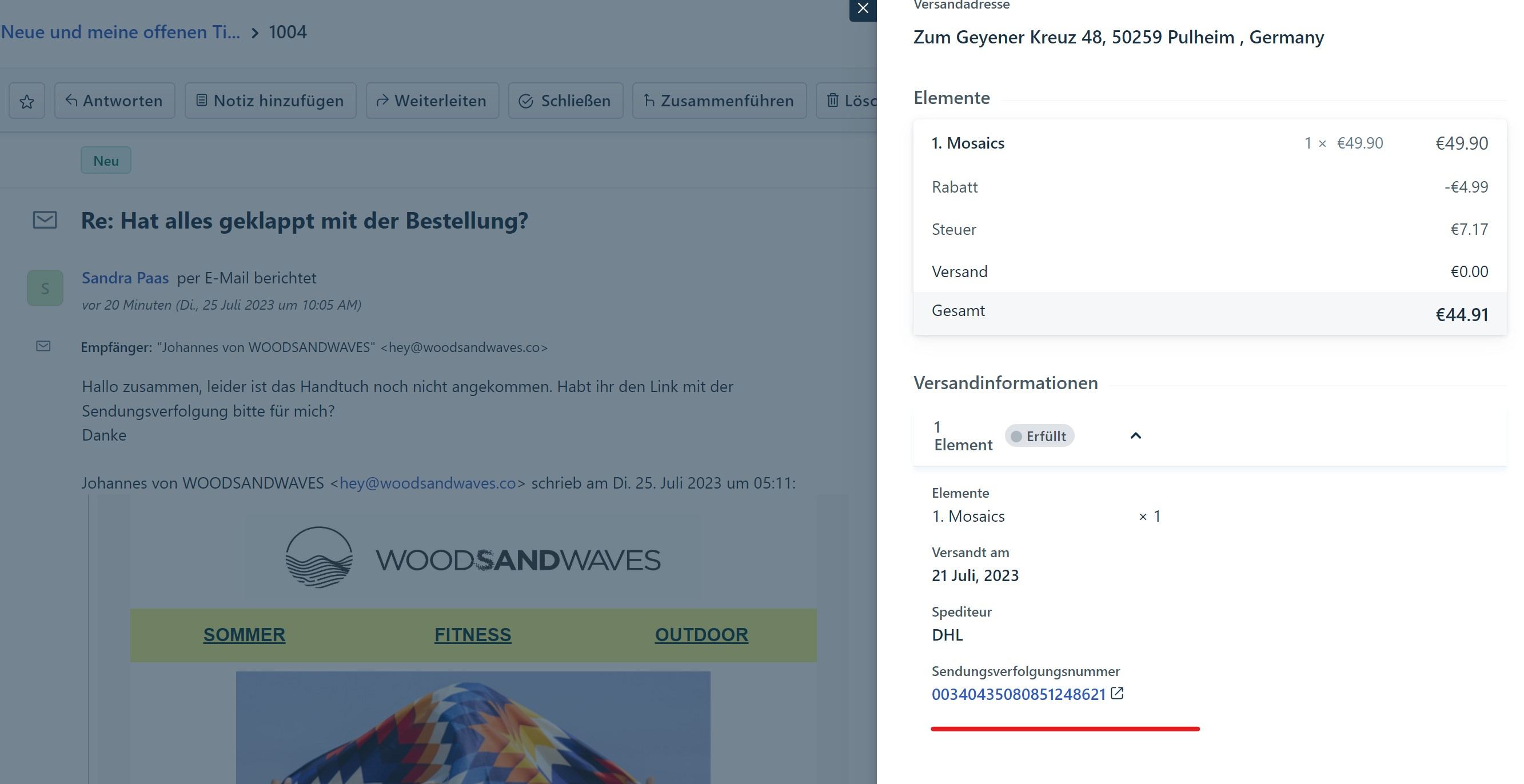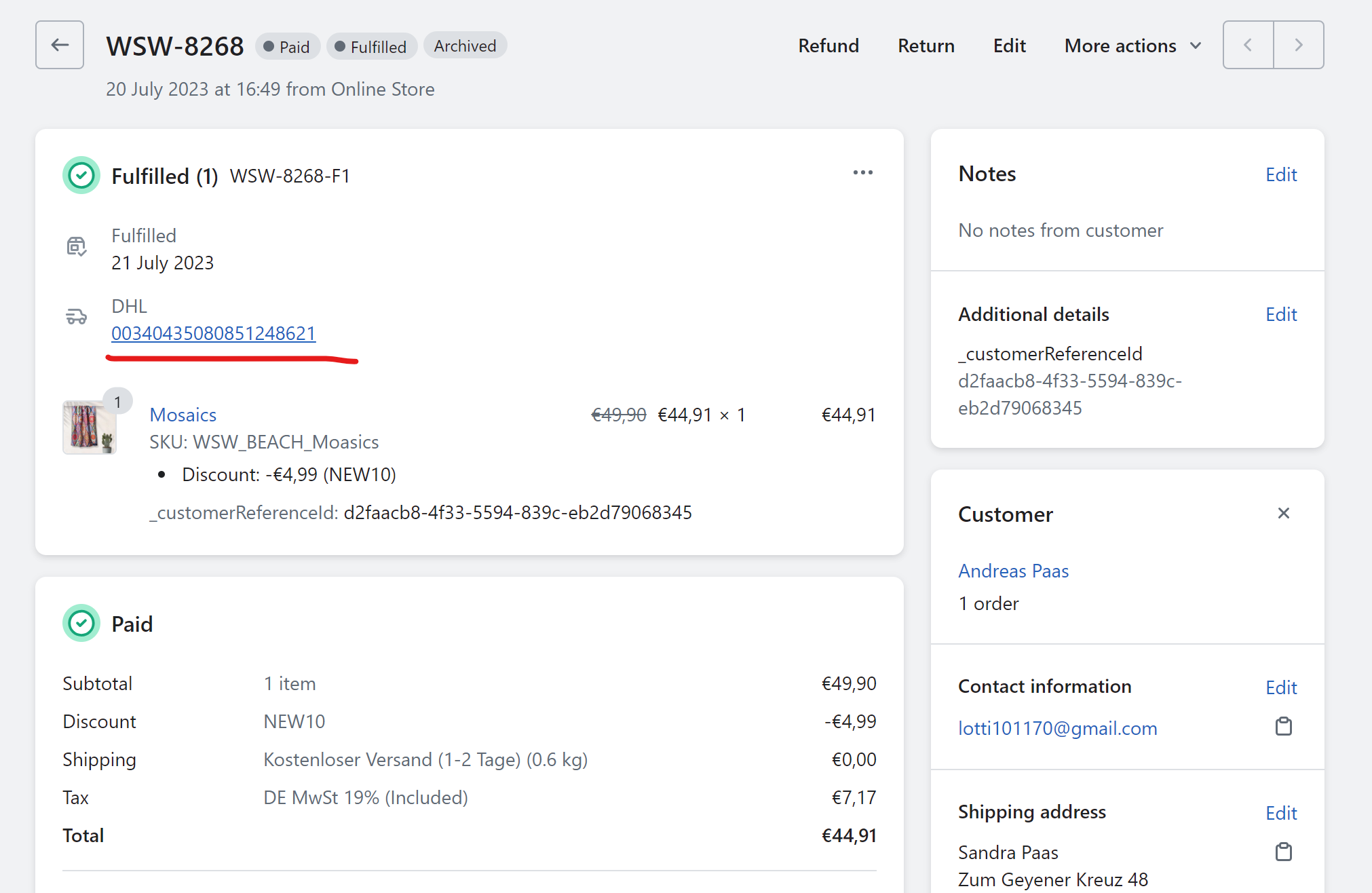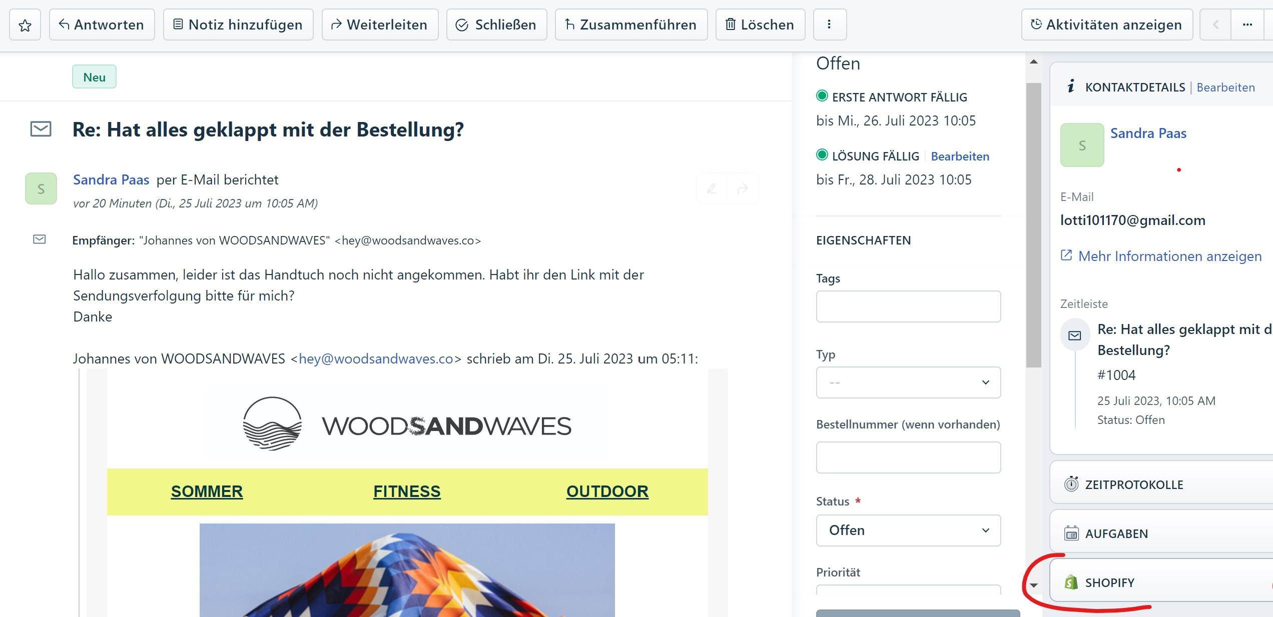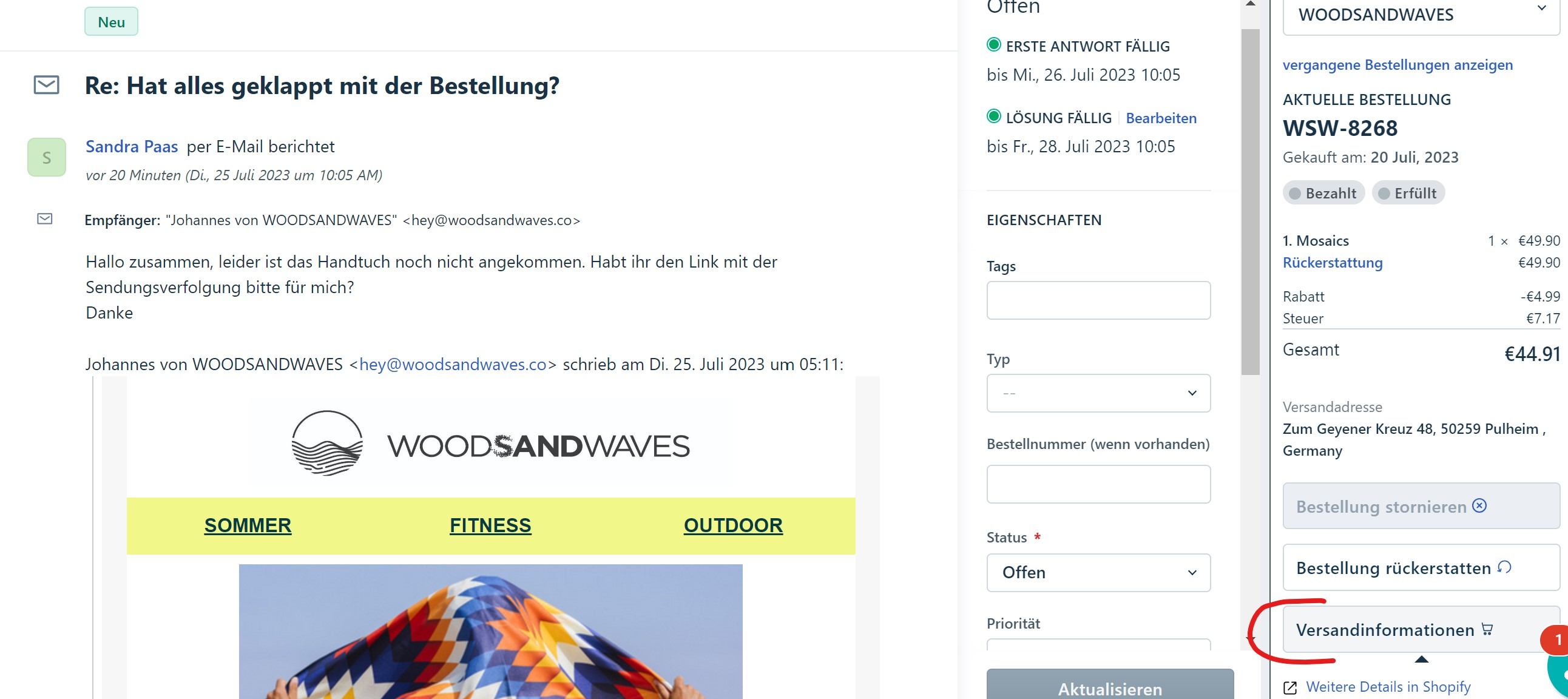 2) Shopify direkt: Suchfeld - Name/Email/Bestellnummer: