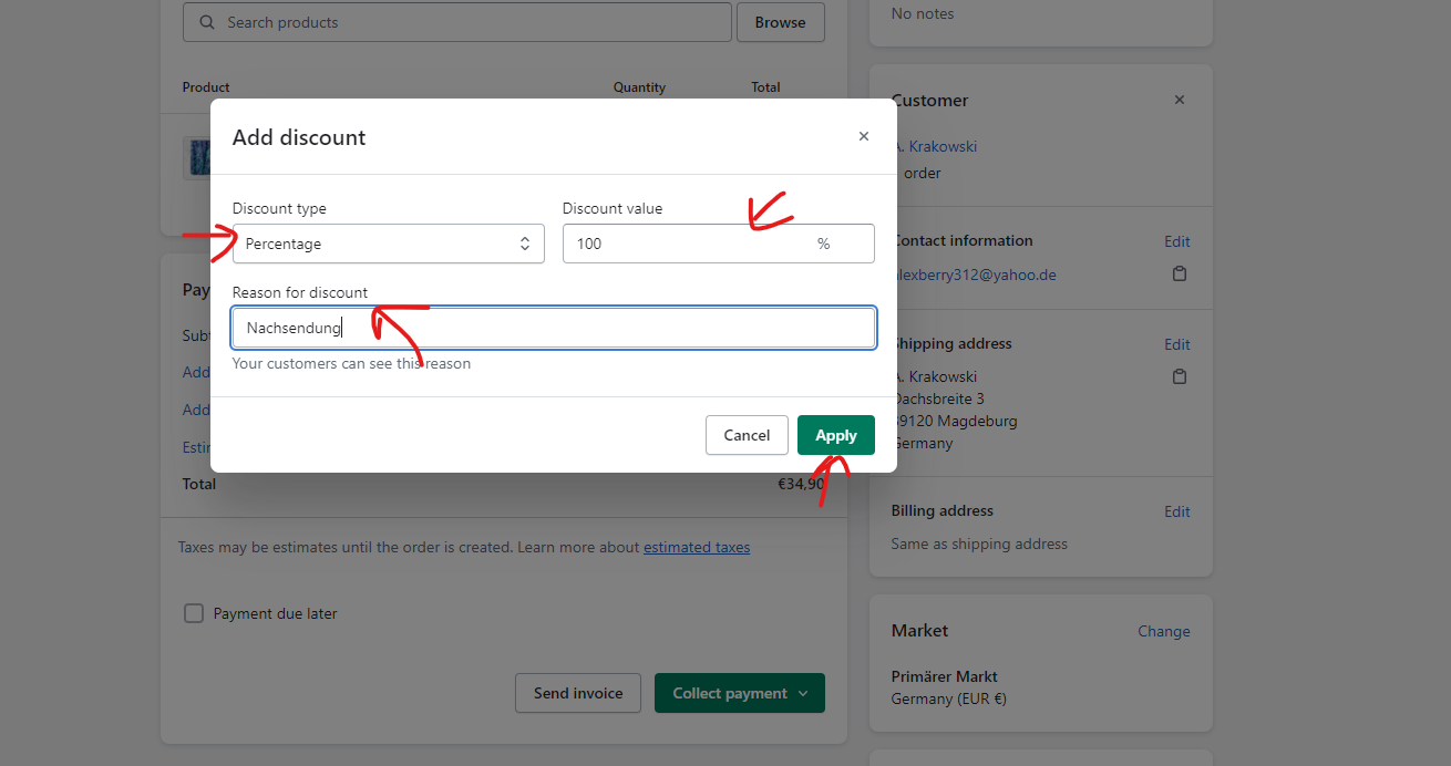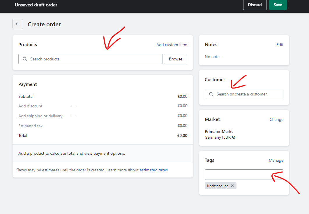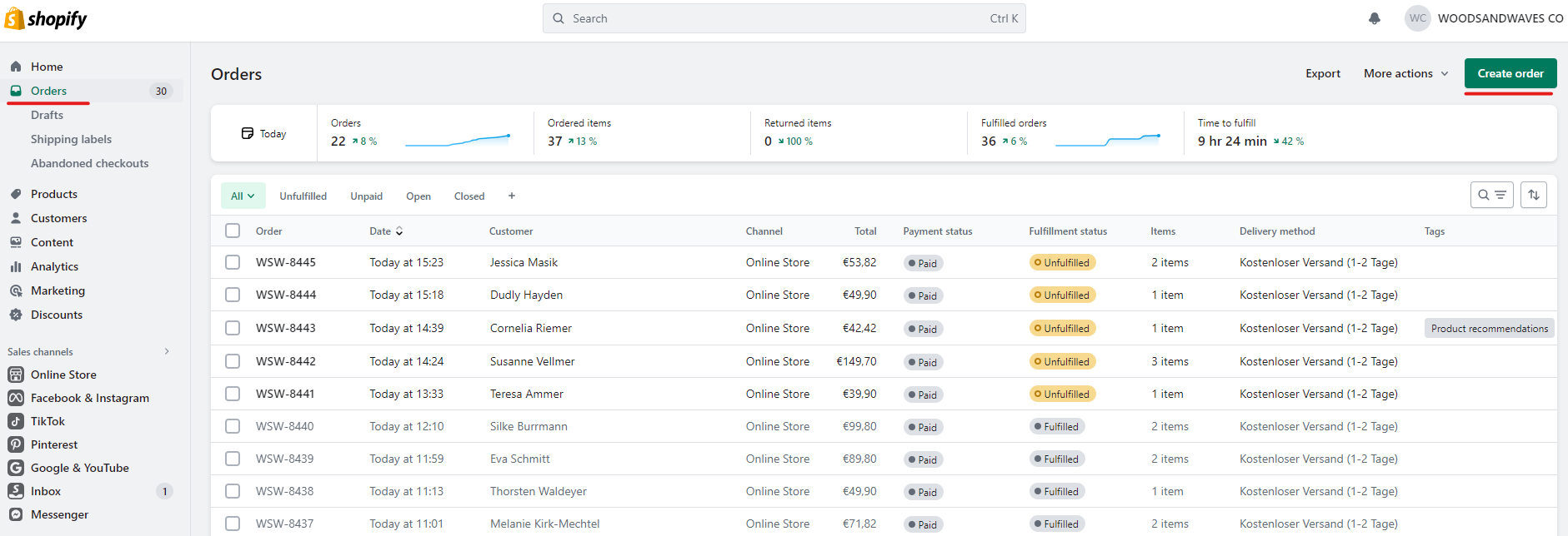 Wenn möglich bitte die Nachsendungen immer über Shopify anlegen.